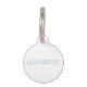 Forme d'os de chien bleu qui a une zone de texte personnalisable pour le nom de l'animal en police de couleur blanche. De l'autre côté, il y a une zone de texte personnalisable pour un numéro de téléphone.