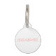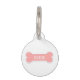 Os de chien rose qui comporte une zone de texte personnalisable pour le nom de l'animal en police de couleur blanche. De l'autre côté, il y a une zone de texte personnalisable pour un numéro de téléphone.