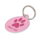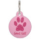 Cette étiquette de nom féminin personnalisée présente un design rose glamour. Le centre comprend un empreinte de patte de chien parties scintillant rose chaud, suivi d'un exemple de nom "Bonne Fille" imprimé dans une police de caractères élégante. Le verso de la balise contient les coordonnées ou le numéro de téléphone.