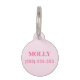 Médaillon Pour Animaux Patte blanche sur fond rose avec informations pers
