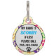 Étiquette personnalisable fraîche d'animal familier pour votre chien ou chat. Supprimez le nom montré et ajoutez votre nom d'animaux familiers et votre numéro de téléphone au cas où ils seraient perdus. La conception inclut les graphiques de fantaisie des textes et d'empreinte de patte de cool que vous aimerez ! Voyez également la conception assortie avec le texte rose pour votre chien ou chat de fille !