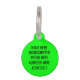 Personnaliser, personnalisez Black Neon green dog Name, Info Pet ID tag vous pouvez customiser sur le devant : avec une mise en garde, avertissement, remarques de sécurité - comme les Allergies alimentaires et le dos : avec nom, téléphone, adresse, numéro d'assurance pour animaux de compagnie, ou toute information importante
