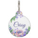 Médaillon Pour Animaux Puce ronde fleurs pastel pour animal de compagnie