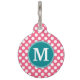 Médaillon Pour Animaux Rose chaud et Pois Turquoises avec Monogramme pers
