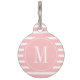 Médaillon Pour Animaux Rose et blanc moderne rayé avec monogramme