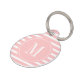 Étiquette d'identification pour animaux de compagnie rose et blanc moderne rayé avec monogramme