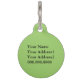 Les rayures vert clair, oranges, et blanches du drapeau de l'Irlande remplissent la forme traditionnelle de shamrock sur l'avant de cette étiquette. L'image est placée sur un arrière - plan plus vert clair. Votre nom d'animal familier apparaît dans le noir à travers le shamrock, mais vous pouvez enlever cela si vous préférez en dégageant le champ. Le dos de l'étiquette assortit le vert avec votre texte dans le noir. Montrez le côté irlandais de votre animal familier !