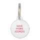 Médaillon Pour Animaux Simple rouge blanc nom personnalisé contact