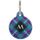 Médaillon Pour Animaux Tartan vert de mer, violet et bleu