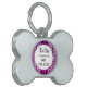 Un cercle léopard rose chaud accentue cette adorable étiquette d'identité en forme d'os de chien qui est entièrement personnalisable pour le nom de votre animal et votre numéro de téléphone. Vous pouvez ajouter ou supprimer toute information que vous désirez!