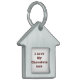 Médaille d'identification pour animaux de compagnie en forme de maison personnalisable avec un modèle de texte personnalisé "J'aime mon chien labrador chocolat" Ajoutez un nom sur des chapeaux, des chemises et des produits pour animaux de compagnie par la boutique d'impression à la demande TheFabricSeal sur Zazzle.com #ZazzleMade https://www.zazzle.com/store/thefabricseal