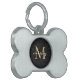 Nom personnalisé de l'animal de compagnie Black Botanical Gold Script Identifiant de l'animal de compagnie avec un monogramme et un nom de script.