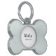 This elegant dog tag features a crisp white center framed by a classic brushed metal bone shape, creating a timeless and easy-to-read design. Your pet’s name and contact number appear in simple black lettering for maximum clarity. Lightweight, durable, and perfect for everyday use, this minimalist dog tag blends style and function to help keep your furry friend safe.