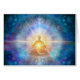 Meditator s'asseyant avec la lumière rayonnante et les motifs psychédéliques autour. Par Daniel B. Holeman.