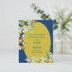 Adorned with hand-painted watercolor lemons, oranges, and soft greenery on a deep blue and gold background, this design captures the sunlit romance of the Italian coast.