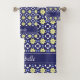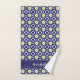 Serviette moderne à motifs floraux marocains bleu et jaune. Personnalisez avec votre nom.
