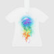 Grande méduse irisée, artistiquement dessinée, brillante, avec de longues tentacules sur le blanc, peinte sur l'arrière - plan multicolore. Méduse arc-en-ciel.