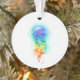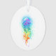 Grande méduse irisée, artistiquement dessinée, brillante, avec de longues tentacules sur le blanc, peinte sur l'arrière - plan multicolore. Méduse arc-en-ciel.