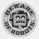 Ils peuvent nous servir maintenant, mais ils finiront par essayer de prendre le contrôle du monde. Vous savez que c'est vrai parce que vous l'avez vu de nombreuses fois dans des films de science-fiction. Vous devez avertir tout le monde que vous pouvez. Une façon simple de le faire est de coller ces autocollants partout. N'attendez pas qu'il soit trop tard. L'humanité a besoin de toi. Note : vous pouvez faire cet autocollant quelle que soit la couleur que vous voulez lorsque vous le customisez.
