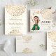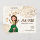 Mehndi invitation budget avec mignonne mariée au henné indien, arrière - plan mandala et guirlandes à lanternes marocaines.