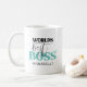 "Offrez le patron ultime avec notre tasse à café Worlds Best Boss élégant. Avec une touche de turquoise, cette tasse est non seulement attrayante, mais aussi entièrement personnalisable pour en faire un cadeau unique. Que ce soit pour un anniversaire, un départ, une bourse de père Noël secrète ou un pot-de-vin pour Noël, cette tasse sera certainement un succès."