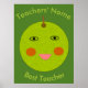 Cette affiche est ornée d'une pomme vert vif avec un grand sourire et des joues rouges roses. Il y a du texte personnalisable autour de la pomme pour vous d'ajouter le nom de votre professeur et un message spécial pour lui ou elle.
