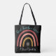 Sac fourre-tout d'appréciation personnalisé de l'enseignant qui comprend un arc-en-ciel couleur boho et un soleil pâle qui se balade sous l'arc-en-ciel, le très mignon "meilleur enseignant jamais" et le nom ou monogramme de l'enseignant