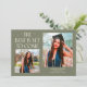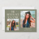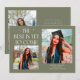 Carte de photo d'annonce de remise de diplôme moderne et fantaisiste comprenant 2 photos sur le devant et 1 au dos. Le texte dit "Le Meilleur Est Encore À Venir" avec des étoiles scintillantes. Ajoutez le nom, les informations et le message du diplômé pour personnaliser cette carte. Couleur vert sauge.