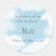 Cet autocollant drôle et morbide présente une scène de ciel bleu céleste, de nuages rêveurs, d'étoiles scintillantes et les mots "En mémoire de feu mon mari [insérer le nom] Mieux vaut tard que jamais!" Parfait pour ceux qui ont attendu longtemps un partenaire.