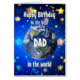 Célébrez votre père avec une touche cosmique ! Cette carte offre une vue imprenable sur la Terre depuis l'espace, avec le message sincère "Joyeux anniversaire au meilleur père du monde." Une façon parfaite de montrer ce qu’il veut dire pour vous - quelle que soit la distance, il est toujours votre numéro un.
