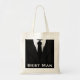 © Sunny Mars Designs - Costume à rayures noir et gris et Cravate Meilleur homme Sacs fourre-tout personnalisés - Cool personnalisable mariage accompagnateur sac en toile abordable avec un costume à rayures noir et gris formel, chemise blanche et cravate noir. Parfait pour être utilisé comme cadeau à votre meilleur homme, groomsman, huissier, porteur de bague ou tout homme dans votre fête de mariage.