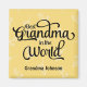 Elégant design de typographie de script personnalisé avec des mots, "Meilleure grand-mère dans le monde" en lettres de calligraphie noir avec des accents de glyphe spéciaux. Zone ci-dessous pour votre nom ou message personnalisé. Arrière - plan est rafraîchissant motif de fleurs jaune et blanc.