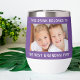 Offrez à la meilleure grand-mère un cadeau amusant avec ce chaudière à vin thermique violet personnalisé. Ajoutez facilement deux photos préférées de son petit-enfant ou de ses petits-enfants. Personnalisez "This Drink Belongs to" à sa boisson préférée (par exemple, bière, soda, etc.) et "Meilleure grand-mère jamais" à quelque chose de semblable en longueur comme "Meilleure grand-mère du monde", et si elle est appelée grand-mère, nana, grammy, etc, le tout dans une simple typographie blanche.