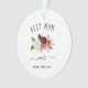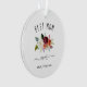 Cet ornement de Noël branché et élégant dit "meilleure maman jamais" en écriture rustique et manuscrite et présente un bouquet d'aquarelle de fleurs de boho dans les tons marsala, orange et blanc pour un cadeau de vacances que votre mère aimera. Ajoutez votre photo personnelle à l'arrière.