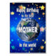 Célébrez votre mère avec une touche cosmique ! Cette carte offre une vue imprenable sur la Terre depuis l'espace, avec le message sincère "Joyeux anniversaire pour la meilleure mère du monde". Une façon parfaite de montrer ce qu’il veut dire pour vous - quelle que soit la distance, elle est toujours votre numéro un.