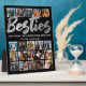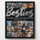 Plaque photo personnalisée des meilleurs amis avec un arrière - plan noir tendance qui peut être changée en n'importe quelle couleur, le mot "besties" dans une police de faux script en feuille d'argent, une citation d'amitié, vos noms, et un modèle de collage photo de 20 carré pour vous de customiser à votre propre.