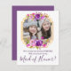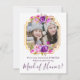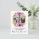 Créez une carte d'honneur de gardienne lorsque vous utilisez votre photo préférée de vous et de votre meilleur ami. Il y a beaucoup d'espace pour mentionner un treas+ mémoire. Comment peut-elle dire non à être votre servante d'honneur ? Votre photo est encadrée de fleurs dorées, violettes et roses. Le texte et le dos sont dans le violet profond.