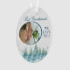Meilleur Grand-Parents Forêt d'hiver Aquarelle Photo Ornement. Aquarelle des arbres en hiver, forêt d'hiver avec neige aux couleurs bleu et vert. L'aménagement est calme et paisible. Customisez avec votre photo et votre texte. Faites un merveilleux cadeau et un souvenir pour vos grands-parents.