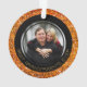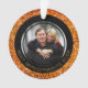 Design, moderne noir et orange BEST GRANDPARENTS JAMAIS l'ornement de Noël, montrant une photo personnalisable au centre - télécharger votre propre photo (carré) - contre un faux arrière - plan parties scintillant. Autour du bord est un texte personnalisable qui lit BEST GRANDPARENTS EVER, que vous pouvez remplacer par votre propre hommage ou message, par exemple PREMIER NOËL. La conception est répétée au contraire. Disponible en d'autres couleurs.