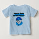 Un petit garçon en maillot bleu, casquette de baseball et texte qui dit "Meilleur Petit Frère du Monde" sur des tee-shirts, costumes, cartes, autocollants, etc.