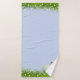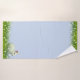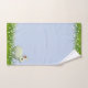 Joli lapin blanc et fleurs sur le set de serviettes de bain bleu clair. Lapin seulement d'un côté. Seules les fleurs sont des bicyclettes.