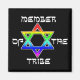 Es-tu membre de la tribu ? "Membre de la tribu" en lettres noires de style hébreu autour d'une étoile colorée arc-en-ciel de David.