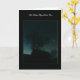 Devant de la carte, une silhouette d'arbres et de bâtiments contre le ciel nocturne avec un croissant de lune et une étoile. Le message à l'intérieur dit "Juste une note pour vous faire savoir que je pense à vous..."