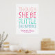 Cette adorable pièce comportant la phrase "Même si elle est petite, elle est féroce" fait un merveilleux cadeau pour la nurserie de votre petite fille. Vous pouvez la personnaliser avec son nom et sa date de naissance, ce qui en fera un objet précieux pendant de nombreuses années. C'est également un excellent cadeau pour les nouveaux parents.