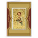 Belle image de bébé Jésus avec la couronne des épines et des clous dans des ses mains. Arrière - plan d'or et de Bourgogne.