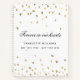 Un arrière - plan blanc élégant avec de la poussière de parties scintillant en faux or. Avec le texte : Forever dans nos coeurs, écrit avec un élégant script de style écrit à la main. Ajoutez un nom et des dates.