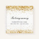 Un arrière - plan blanc élégant avec de la poussière de parties scintillant en faux or. Avec le texte : Dans la mémoire aimante écrite avec un élégant script de style écrit à la main. Ajoutez un nom et des dates.