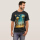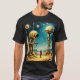 A time traveler encounters two giant robotic creatures in this cool sci-fi t-shirt design.