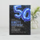 invitations à 50e anniversaireinvitation masculine de 50 ansmens 50e anniversaire invitationsinvitations bleues à 50e anniversairemasculin pour luibleu marine royal noircool moderne futuriste urbainfantaisie amusant et drôledécontracté métallique brillant