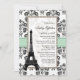 Invitations nuptiales de douche de joli et sophistiqué style parisien avec une frontière florale de damassé noire et blanche antique vintage, un vert en bon état et une conception de regard de ruban imprimée par jade et Tour Eiffel là-dessus. Conçu par Chrissy H. Studios, LLC. Tous droits réservés.